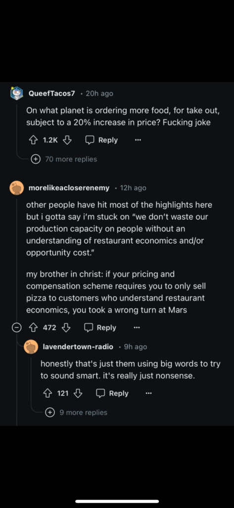Apparently there’s a wave of restaurants extorting customers of money rather than just raising their prices. I mean, these wonderful redditors are summing it up pretty well